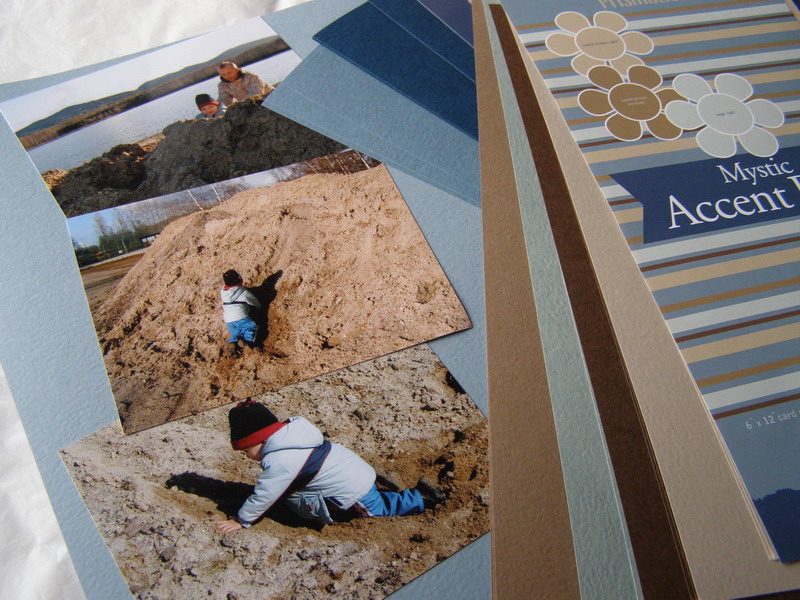 Výběr papíru by se měl vždycky řídit podle fotek... Každá fotka vyjadřuje nějakou situaci, náladu a správným výběrem papíru by se tahle nálada měla podtrhnout... takže když máme např. fotku rozesmátých dětí na pozadí zimní krajiny, nebudeme volit podzimní teplé tóny, ale sáhneme do nějakých studenějších odstínů... a u vzorovaného papíru vybereme raději ten, na kterém jsou ornamenty, které jakoby namaloval "děda Mráz", než po těch, které nám asociují rozkvetlou louku... Barvy samotné by měly korespondovat s barvami, které se objevují na fotce... nepouštějme se na začátku do složitých kombinací několika druhů papírů, ale zaměřme se raději na dobrou volbu podkladového a jednoho nebo dvou doplňkových...